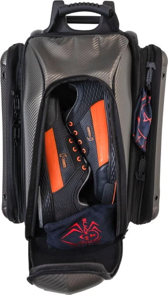 The Hammer Carbon Shield Double Roller offers a premium base with molded insert ball holders! This 2 ball bag features a retractable locking handle system, which closes flush to the edge of the bag allowing compact storage, plus wide 5-inch wheels for stability for a smooth roll.