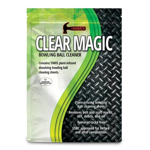 Clear Magic is a plant-powered bowling ball cleaning sheet mixed with 7 fl oz of water. This product is designed to remove belt and scuff marks, dirt, debris, and oil from the surface of all types of bowling balls. Clear Magic restores the tacky feel of the ball.